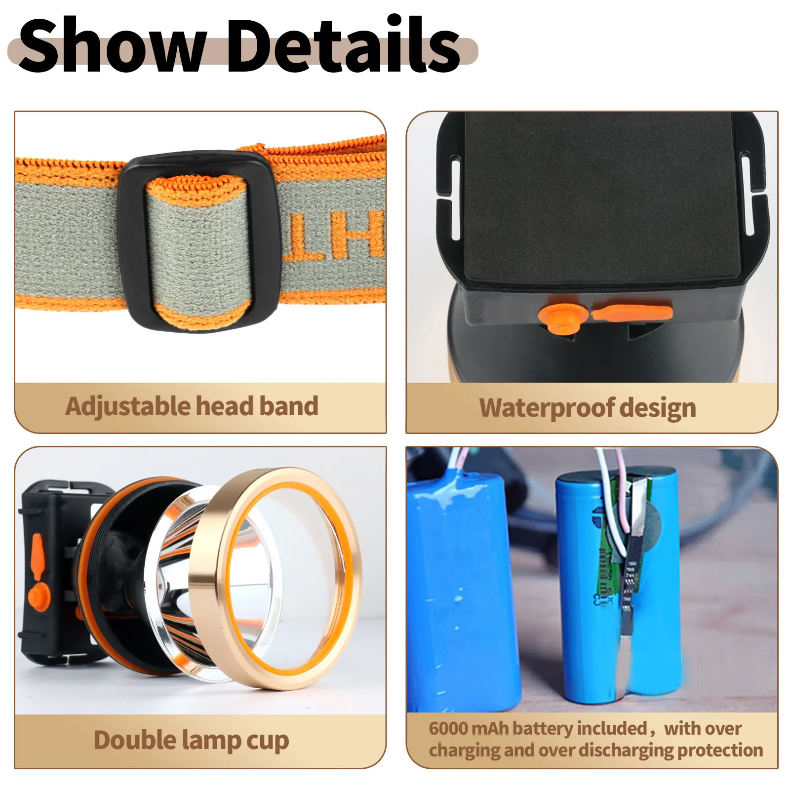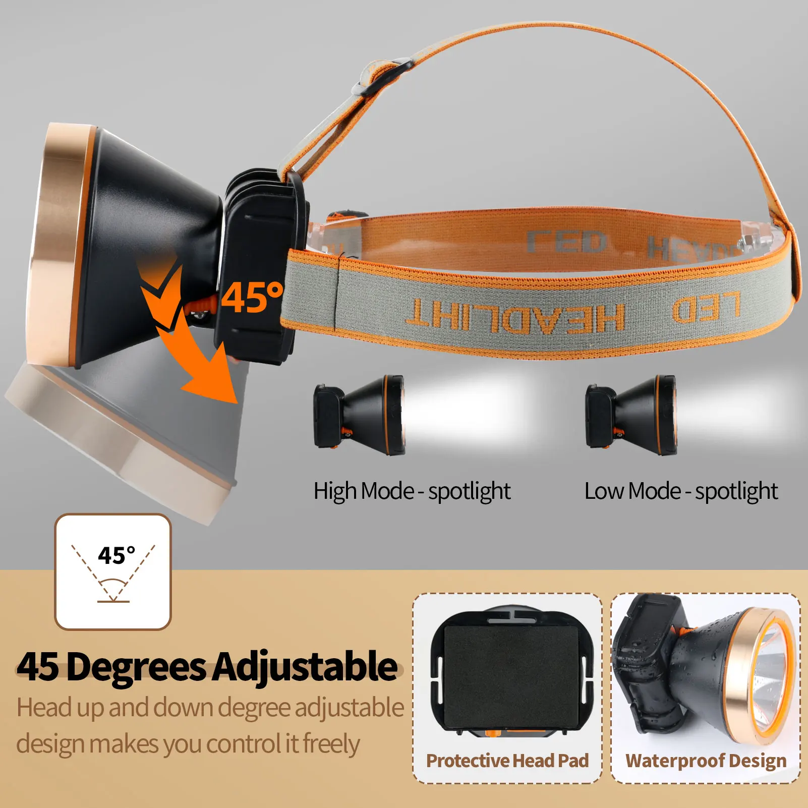 Угол освещения регулируется, головка лампы может вращаться на 0-60 градусов, эластичная Регулируемая головная повязка, она более гибкая.