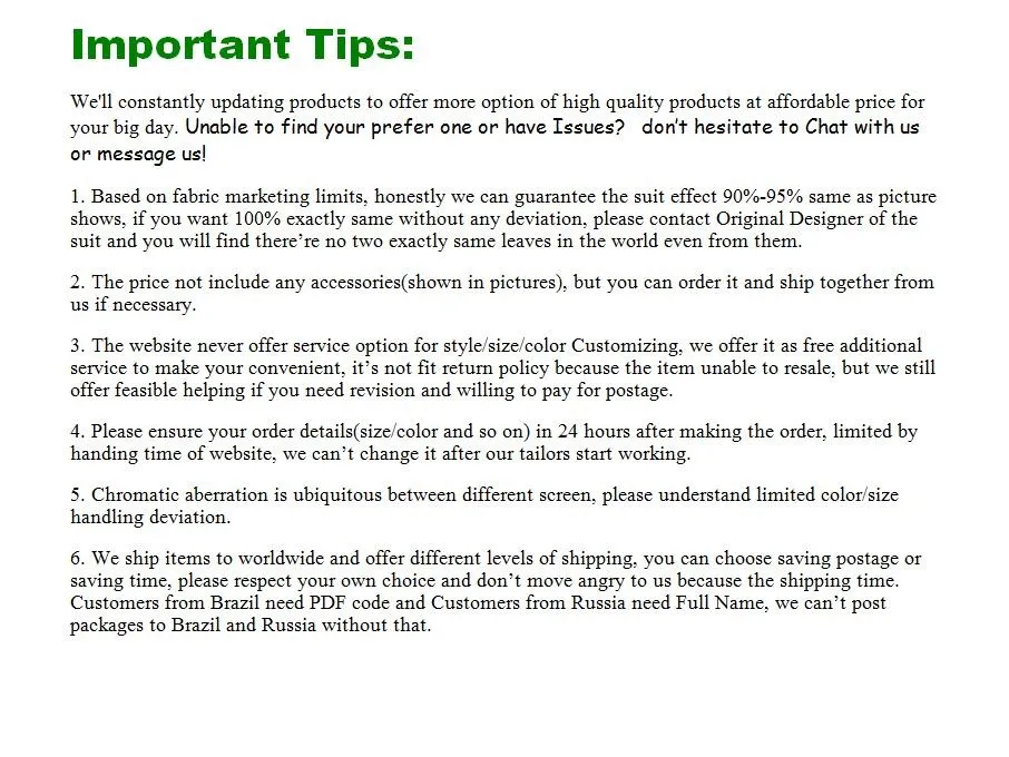 A.Мы являемся профессиональным производителем, мы всегда предоставляем вам высококачественные, недорогие продукты, добро пожаловать на оптовую продажу. (Все костюмы будут сделаны так же, как на 90%, как на изображении, и галстук имеет только чистый цвет, не может на 100% совпадать с изображением, пожалуйста, поймите.)