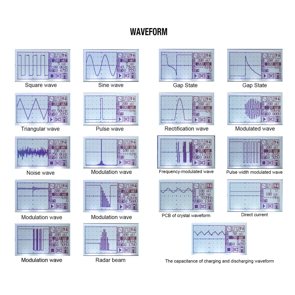 Это один из лучших2 в 1Инструменты для тестирования вНа открытом воздухе тестированияИлиОбучения. ⒈В Высокоскоростной AD пробоотборник и ЦП Может преобразовывать аналоговый сигнал В Для того, чтобы Цифровой сигнал и показать на 128X64ЖК-дисплей Дисплей с подсветкой. ⒉В Высокоскоростной компаратор Может получить хороший триггер края для подарка Сент- Eadi Ly. ⒊В его мультиметровой части используется выделенный Чип (6000-Количество) , Которые могут Pr Более высокая точность. ⒋В Большая емкость Литиевая батарея может обеспечить 10Часов Рабочая А После того как При полной зарядке. Содержит: Scopemeter Х 1 шт Руководство пользователя Х 1 шт Сумка для переноскиХ 1 шт Тесты свинца Х 1 шт Зарядное устройство Х 1 шт 20 MH (10:1) Зонд Х 1 шт Встроенный аккумулятор (1200 мА-ч) Х 1 шт