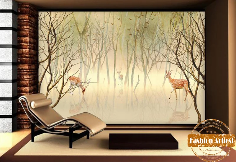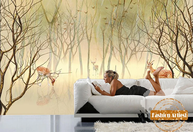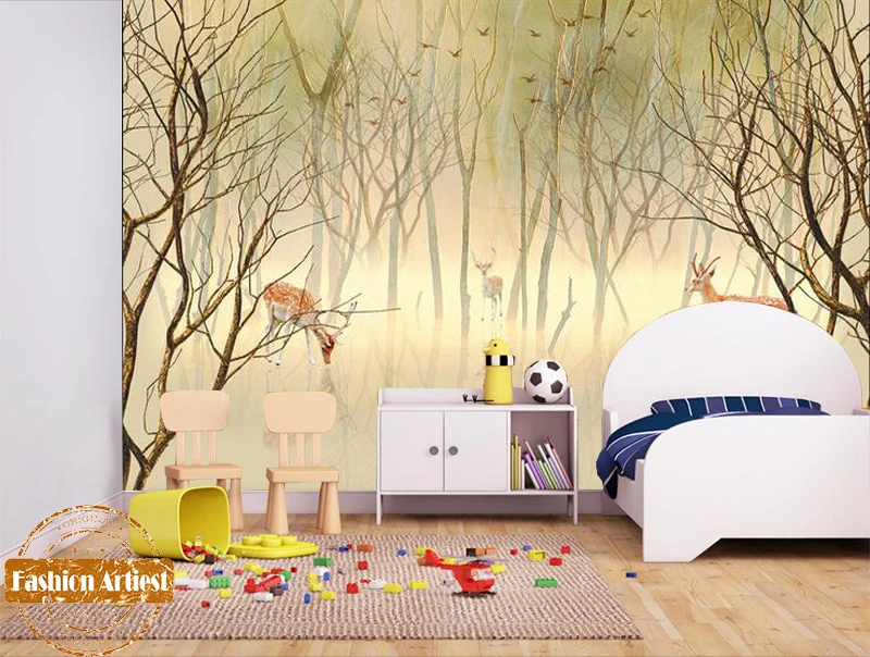 Пользовательские Дети абстрактные обои росписи Олень в фэнтези сон лес ТВ диван спальня гостиная кафе бар ресторан фон