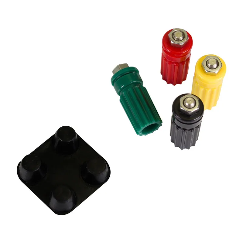 С положительными и отрицательными отметками на каждом конце полосы, и индикацией цвета для 4 клемм на алюминиевой плате для различных напряжений.