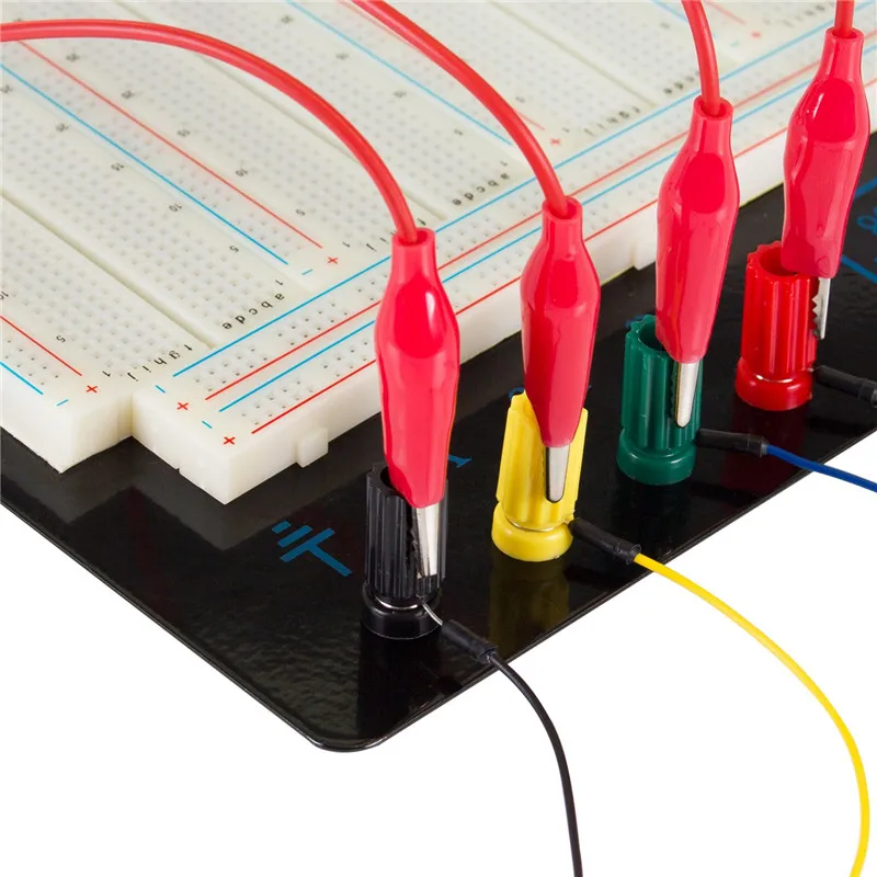 ZY-208 для хлебопечки предназначена для беспроблемного эксперимента с электронными схемами. Это огромная алюминиевая доска с макетными досками, закрепленными на боку винтами. Вы можете просто подключить компоненты к макетной плате, подключить их к некоторым перемычкам и сделать эксперимент работать тогда! Полностью не требует пайки, что экономит время и является удобным и экологически чистым. На алюминиевой доске есть 4 круглых отверстия для установки клемм для дополнительной мощности-три разных напряжения и GND, подходит для экспериментов, работающих при различных напряжениях одновременно. Таким образом, эта плата обеспечивает большое разнообразие средств для проведения экспериментов. Под этой черной алюминиевой доской вы можете добавить 4 резиновых основания, предоставленные в посылка, поэтому доску можно удобно разместить на столе или верстаке.