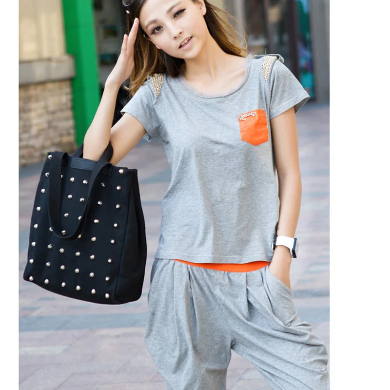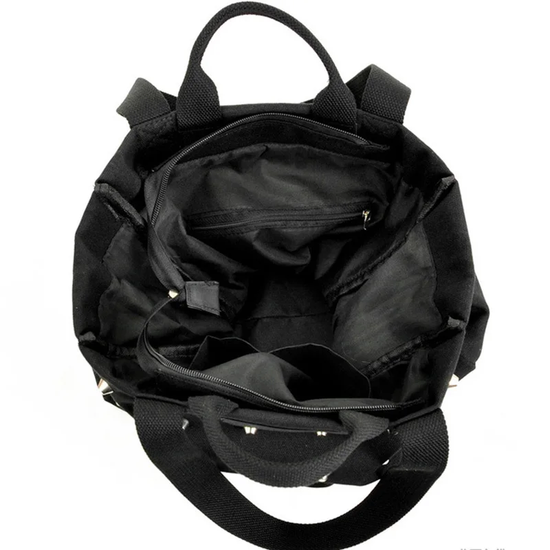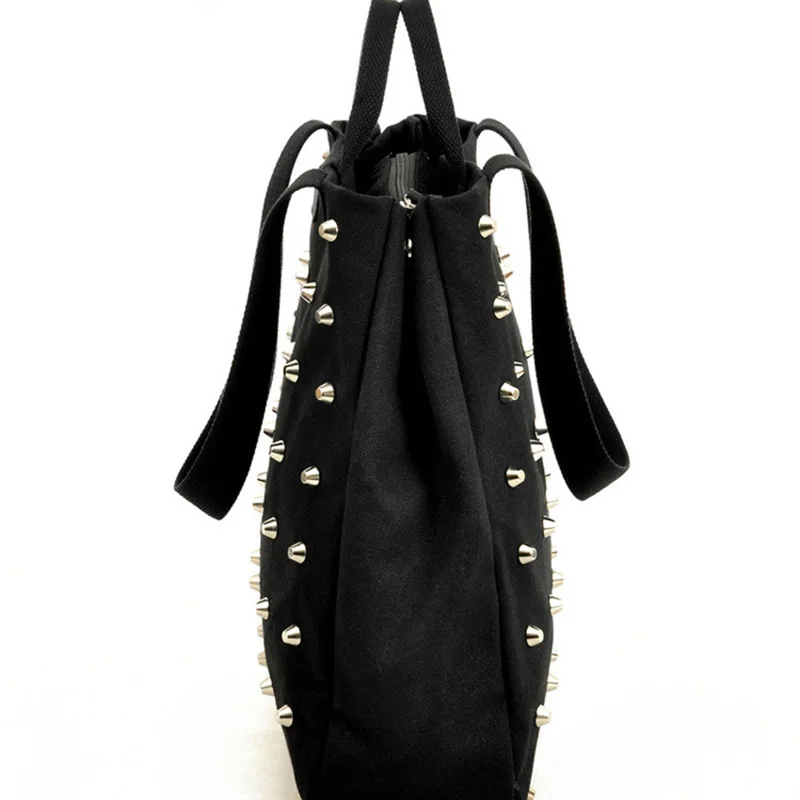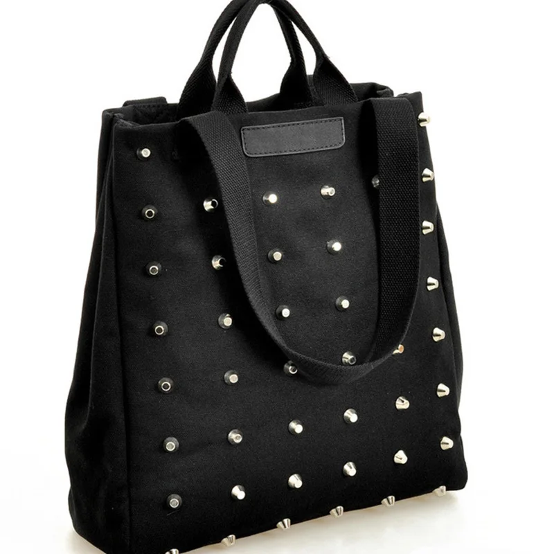 2018 Бесплатная доставка, модные уникальные женские парусиновые сумки в стиле панк, винтажная сумка на плечо с заклепками, Черная Женская Сумка-тоут