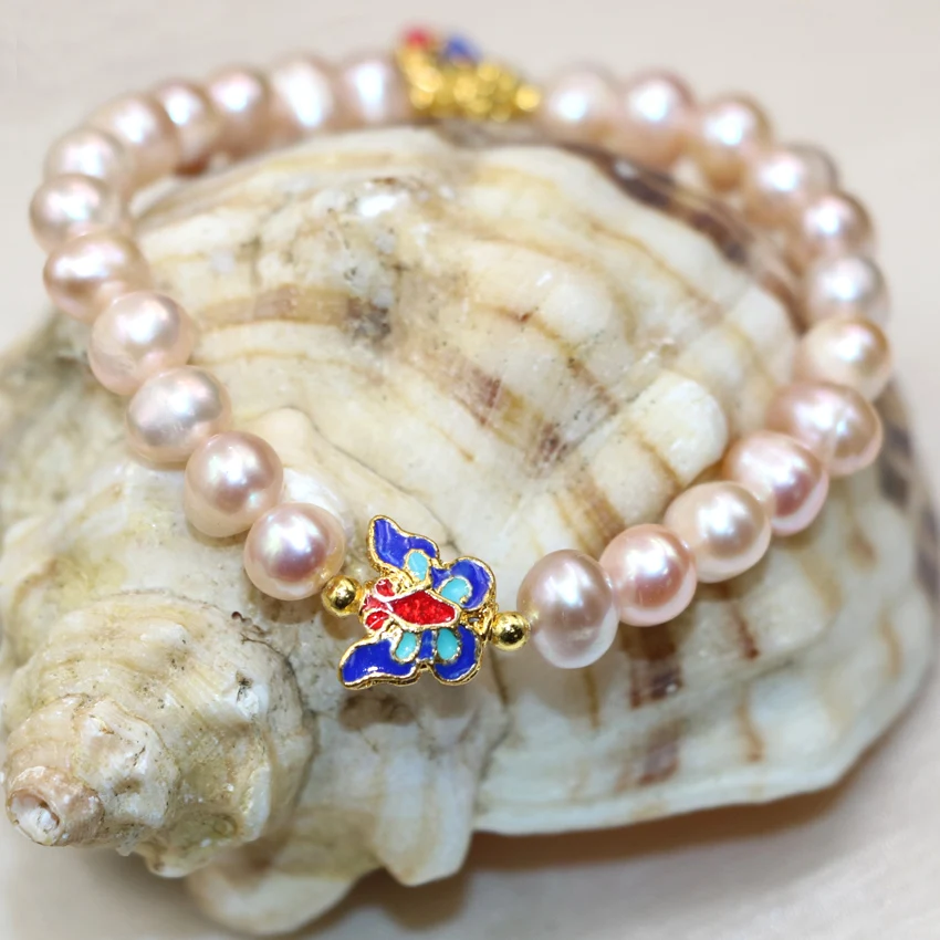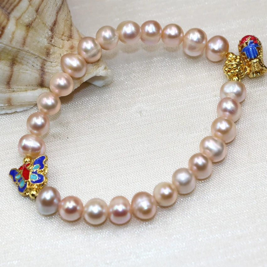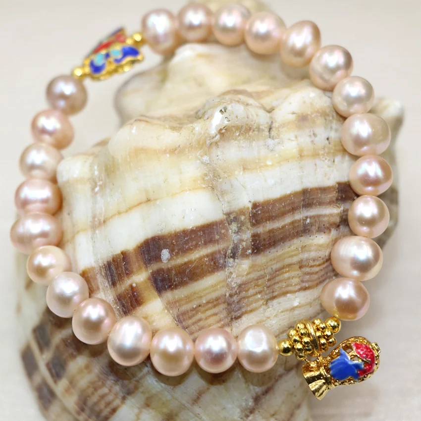 Изысканные бусины из натурального оранжевого пресноводного жемчуга в богемном стиле, 8-9 мм, очаровательные браслеты для женщин, сделай сам, ювелирные украшения, 7,5 дюйма, B2978
