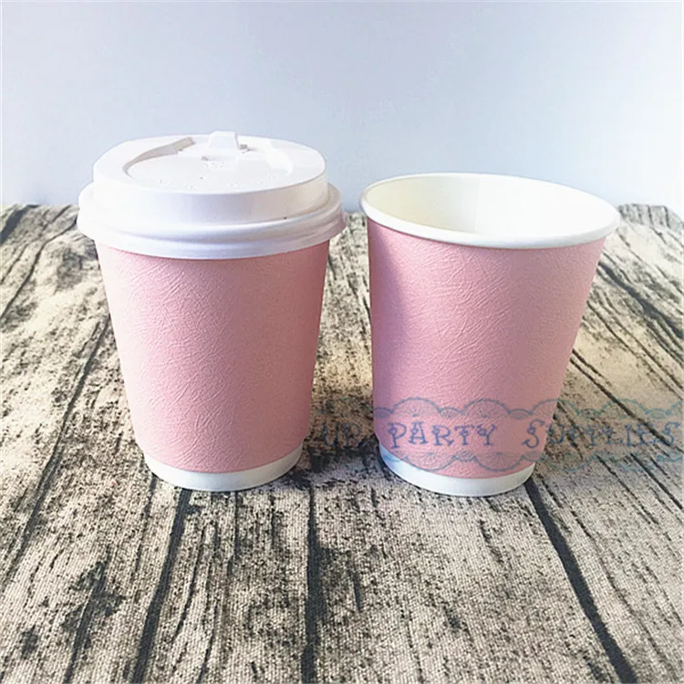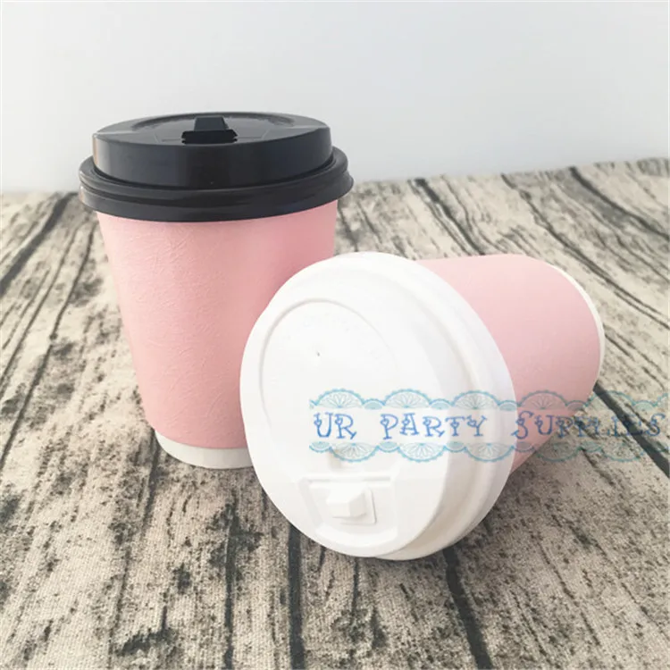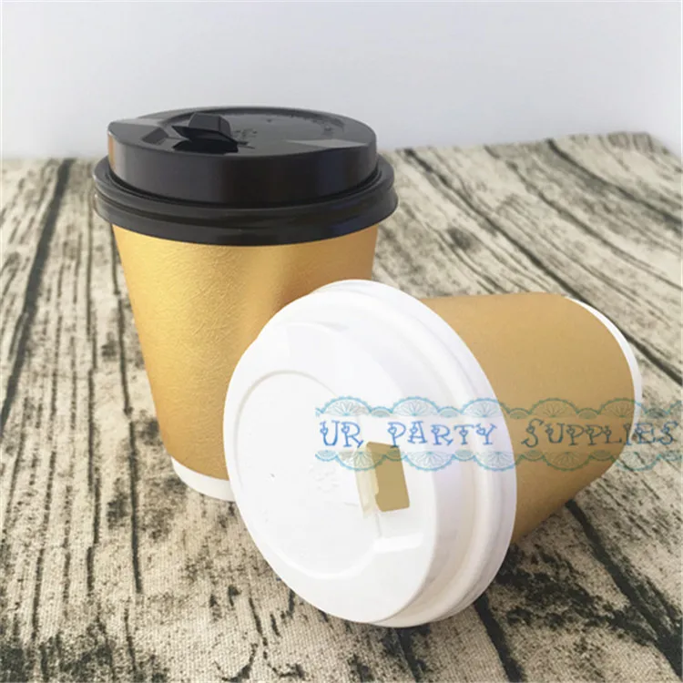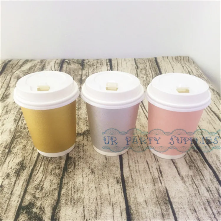 100pcs Thick Coffee Paper Cup Foil Gold/Pink/Silver Paper Cups With White Lids Hot Beverage Drink Coffee Milk Tea Cups