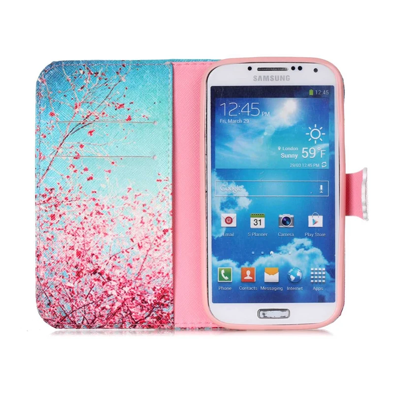 Hot Colorful Designs Stand PU Leather Card Slot Cover Wallet Case For Samsung Galaxy S4 I9500