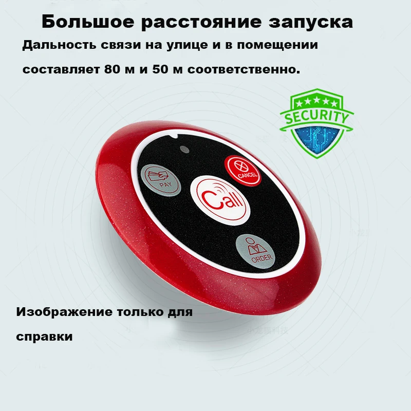 3.Сильный сигнал и высокая чувствительность приемника:Система вызова работает до 80 м в открытой местности.