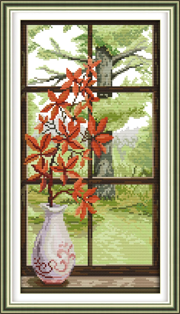Неспешный домик с пейзажем, картина с счетным принтом на холсте DMC 11CT 14CT, наборы NKF, вышивка крестиком, набор для рукоделия