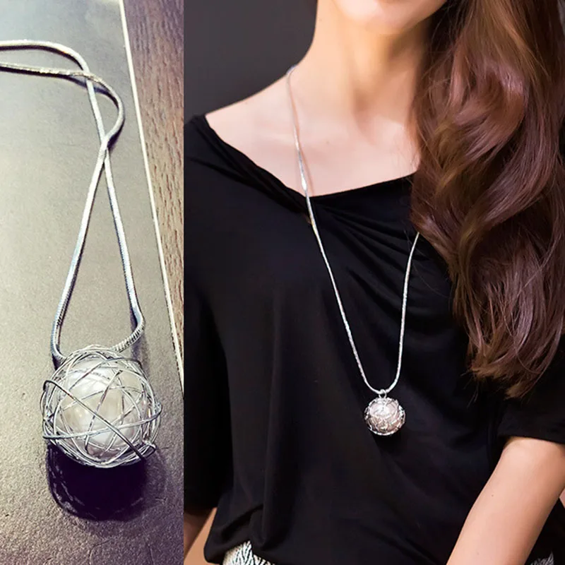 2017 Птичье гнездо Перл Кристалл Мода Лето Корея Декоративные Аксессуары Ювелирные Изделия Длинный Свитер Цепи Ожерелье Женщин Кулон