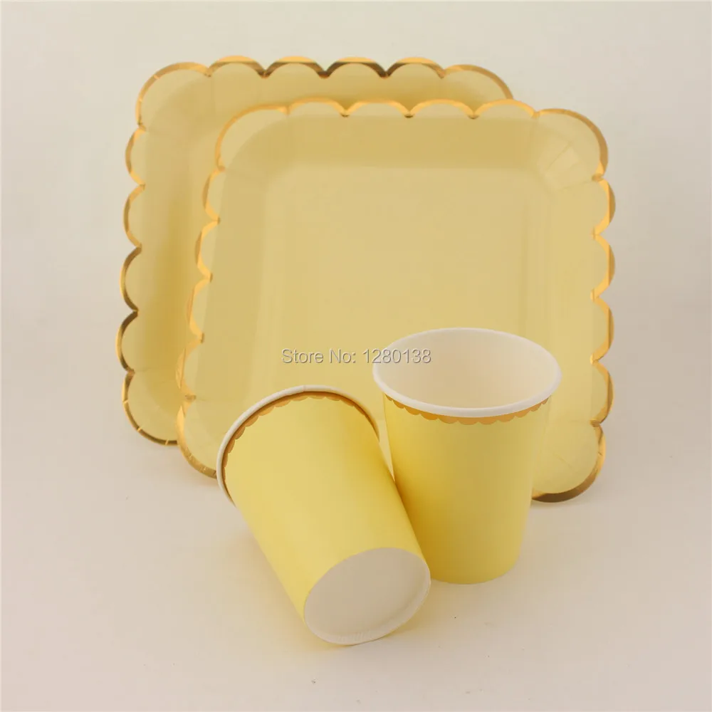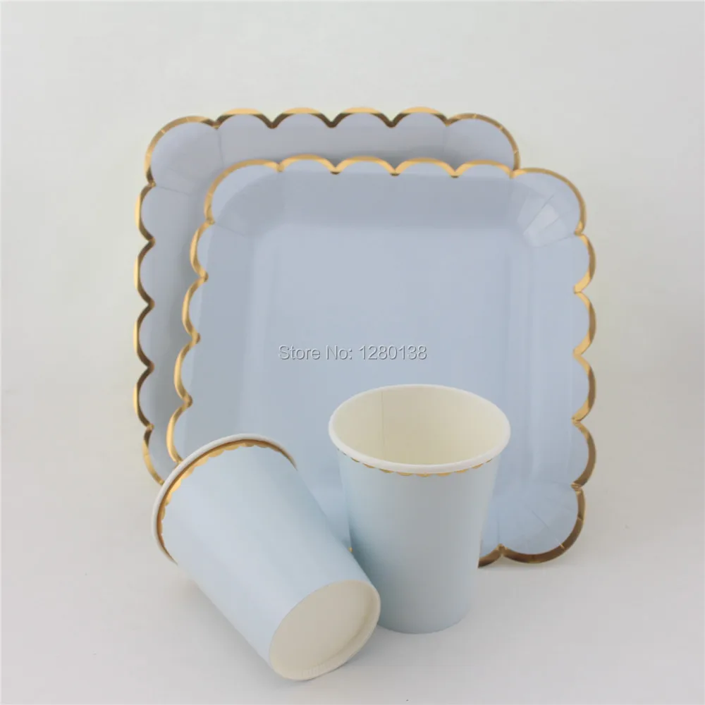 24 набора твердых одноразовых посуды бумажные тарелки для вечеринки чашки, ребенок, душ пользу украшения для свадебного стола розовый синий мятный желтый