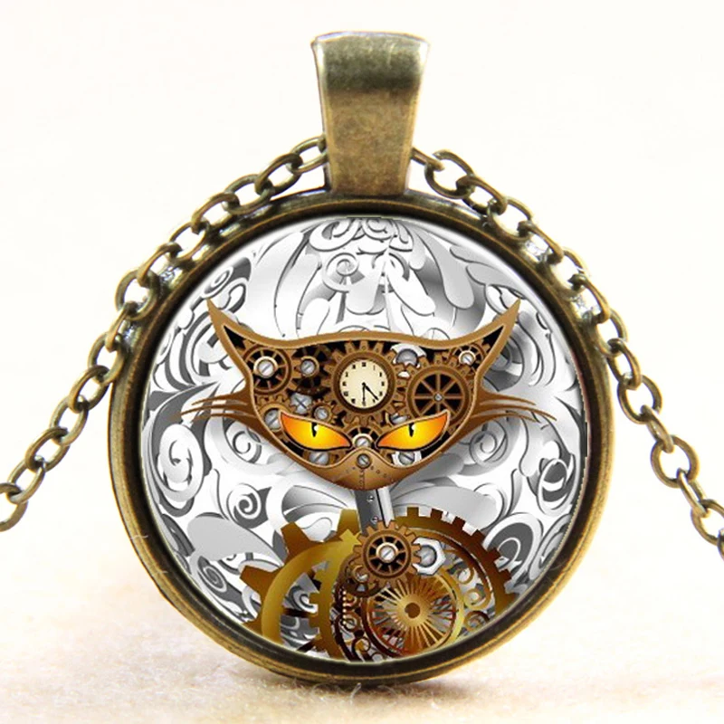 Бронзовый дизайн кошка дизайн кулон ожерелье кошка сплав бижутерия панк котенок Винтаж ожерелье панк стиль передач кошка кулон b665