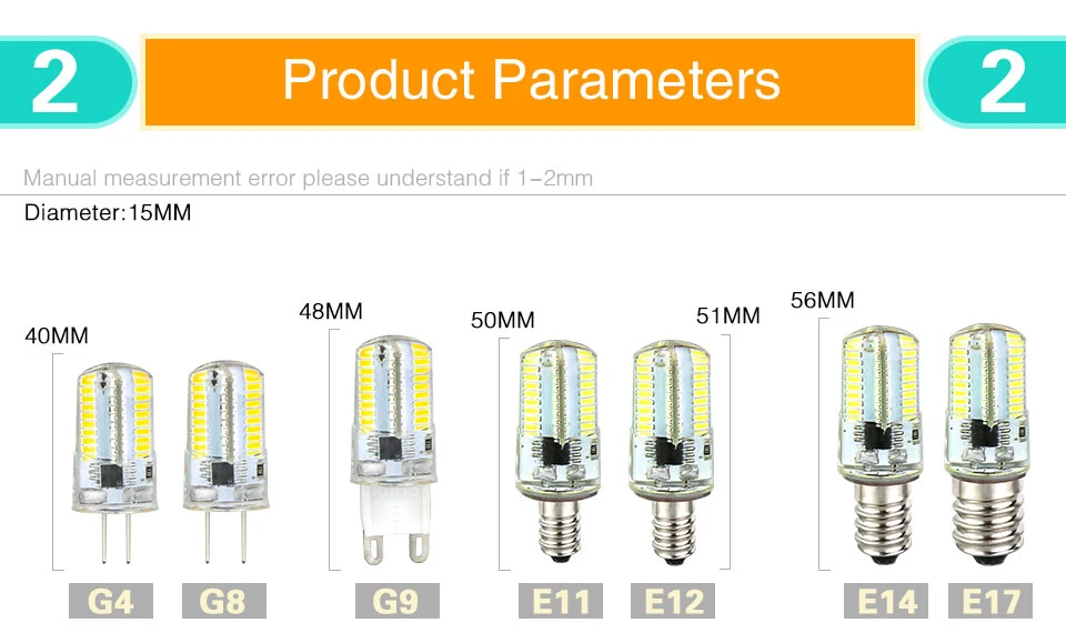 Особенности: Низкое потребление, высокая яркость. Энергосберегающий и не вредит экологии, благоприятна для переработки. Низкое тепловыделение, отсутствие УФ или ИК-светильник. Сейсмический, ударопрочный, нетепловое излучение, безопасный и стабильный, надежный Подходит для домашнего, офисного и выставочного освещения Очень низкое тепловыделение, кроме того, экономия светильник Мощность Он имеет длительный срок службы, никаких опасных материалов. Немедленный старт, не мигает. Прочный, ударопрочный. Экономьте мощность больше, чем обычные лампы. Изготовлен из высокого качества материалов. Параметры: Тип основания: G9/G4/E14/E11/E17/E12/G8 Напряжение: 110 В/220 В переменного тока Светодиодный Тип: SMD3014 Светодиодный Кол-во: 64 шт. Светильник Цвет: белый/теплый белый/белый Световой поток: 320LM Цветовая температура: 5500-6000K (белый); 2800-3200K (теплый белый)