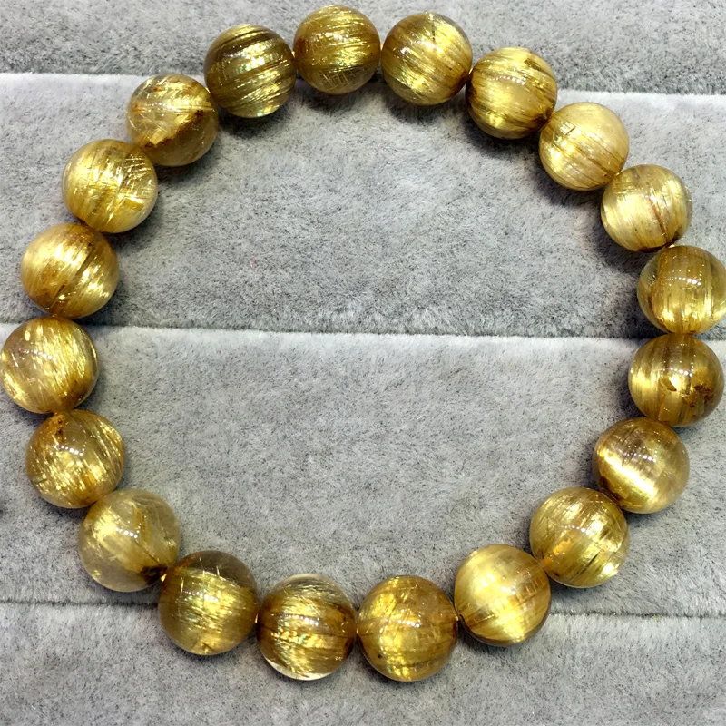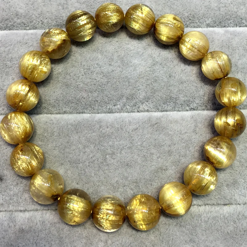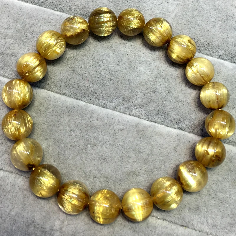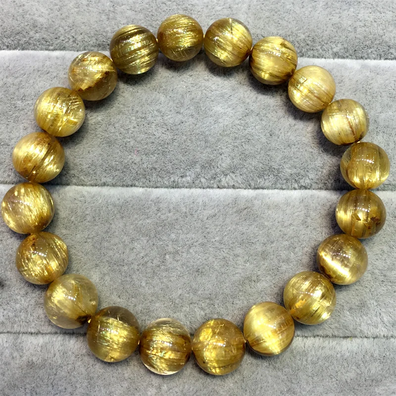 НатуральныйТитановый Золотой ворс Рутиловый КварцБраслетКруглые бусины 9 мМ