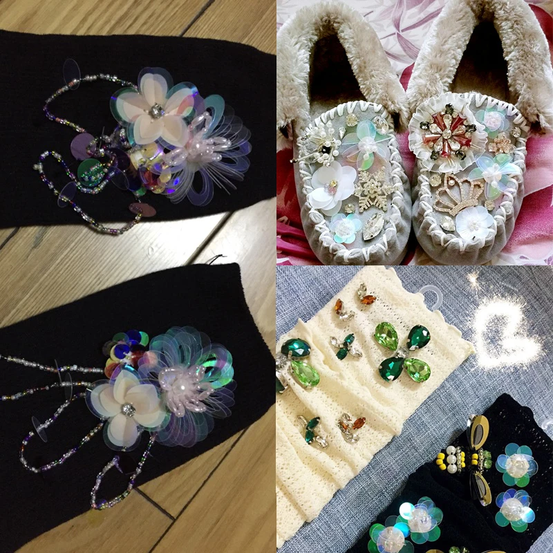 Ручной работы патчи стекло/смолы кристалл одежда со стразами аппликации с бисером и блестками цветы ручной вышивки патч