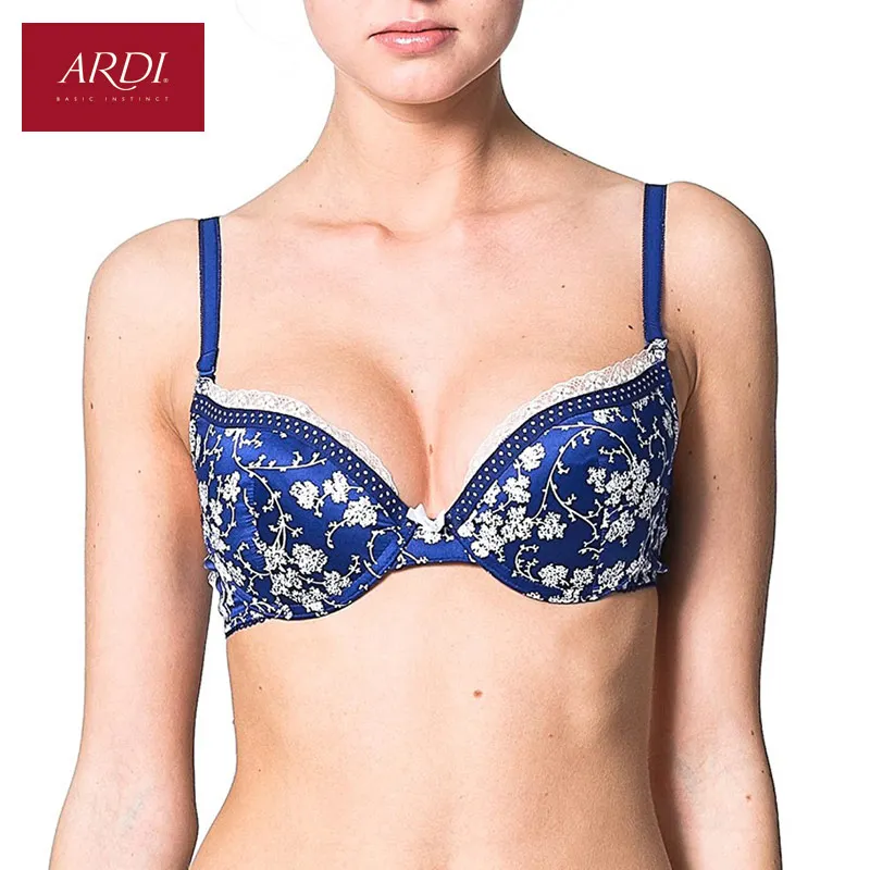Формованный бюстгальтер с гелевым пуш-ап производится изАтлас с цветочным принтом. Узкая лента и кружево украшают верхнюю часть чашки. Поролон в нижней части чашки имеет толщину 1,5 см. чашка дублирована натуральным гипоаллергенным материалом высококачественного хлопка, который легко впитывает влагу, позволяет телу дышать и создает ощущение комфорта. Регулируемые съемные бретели.Крошечный Лук, сидящий между чашками, добавляет интерес.