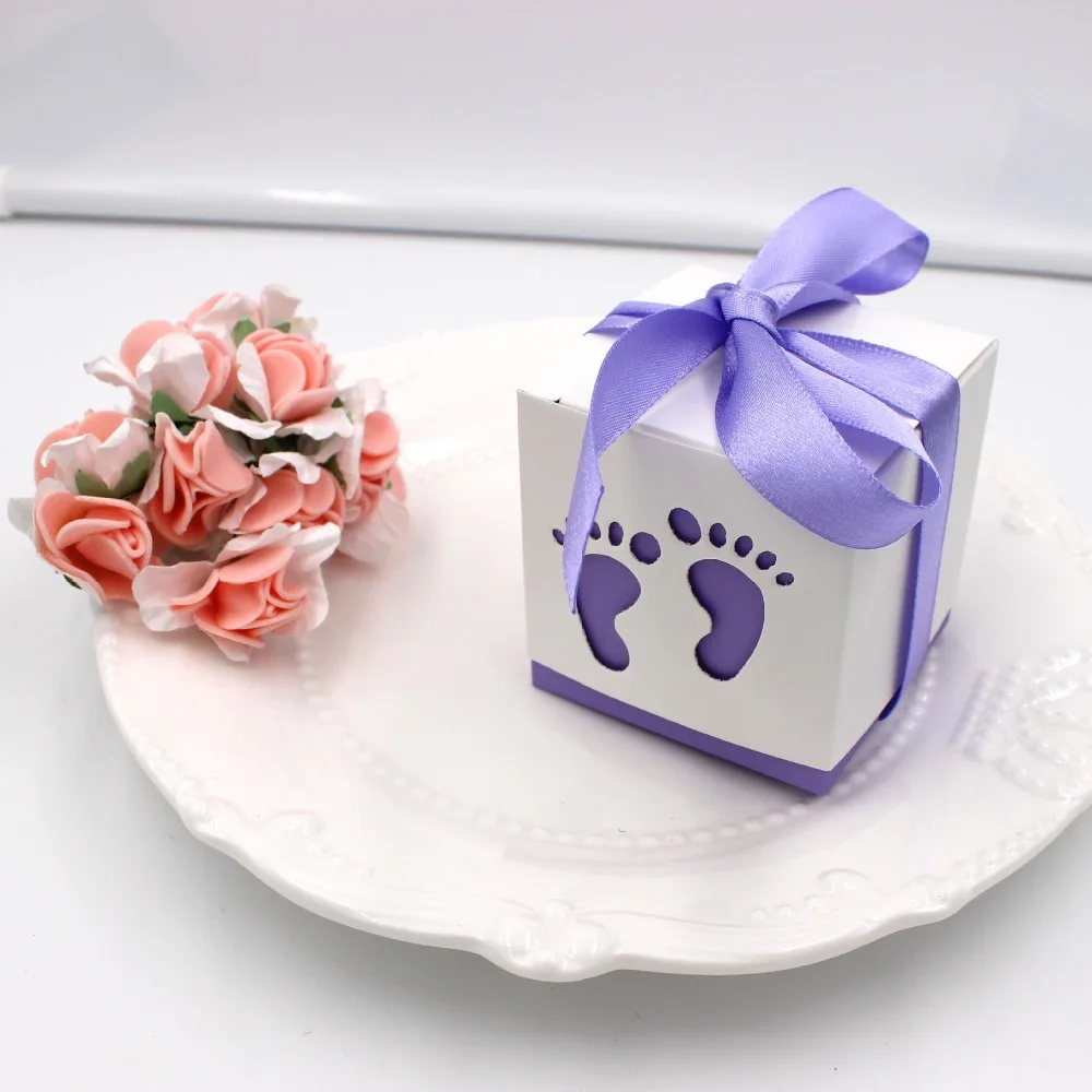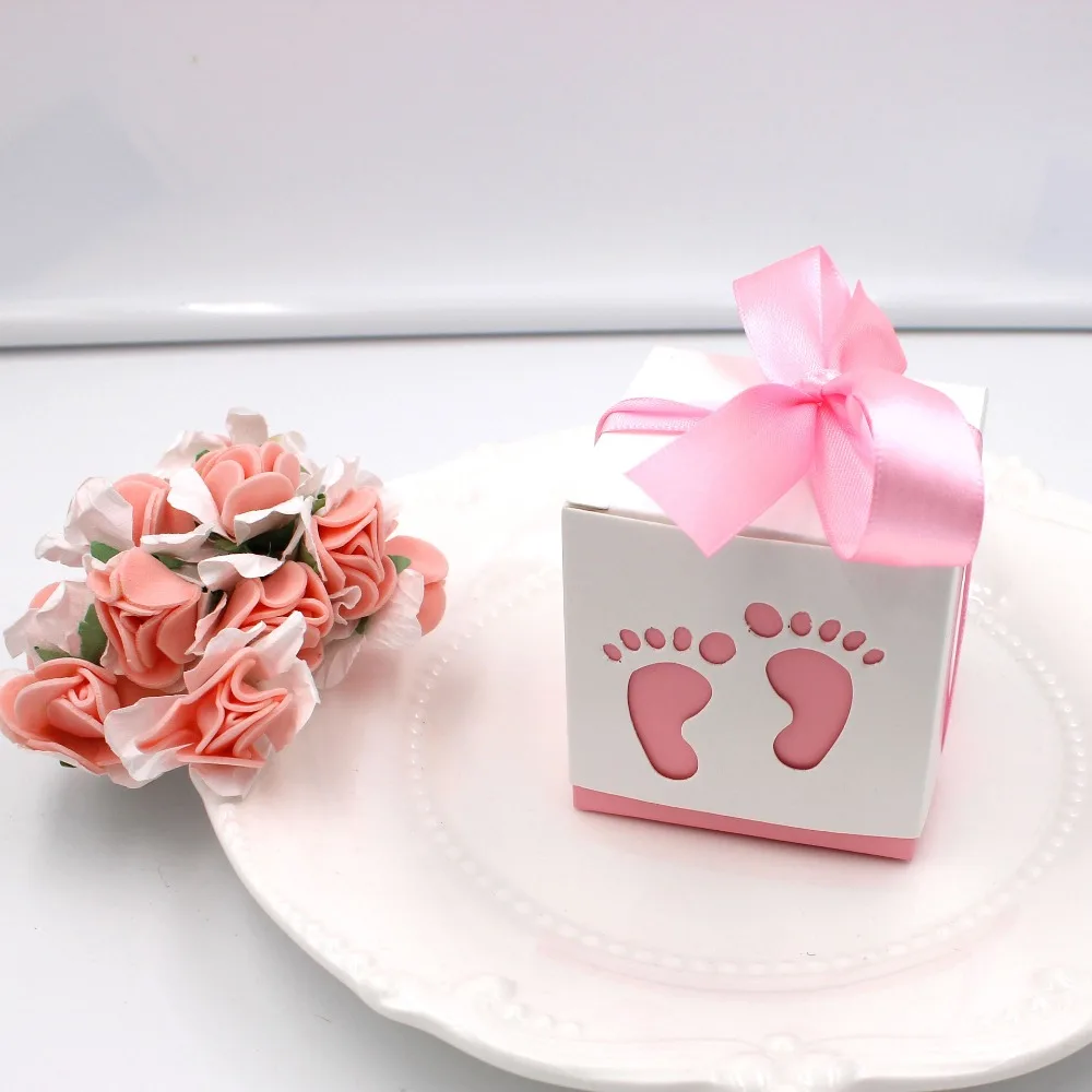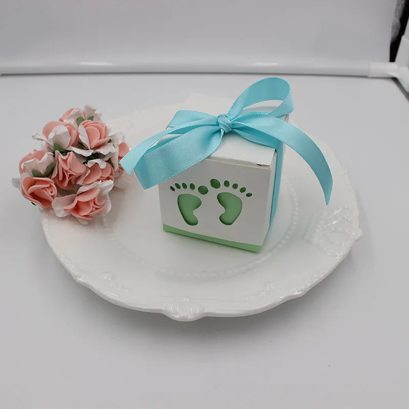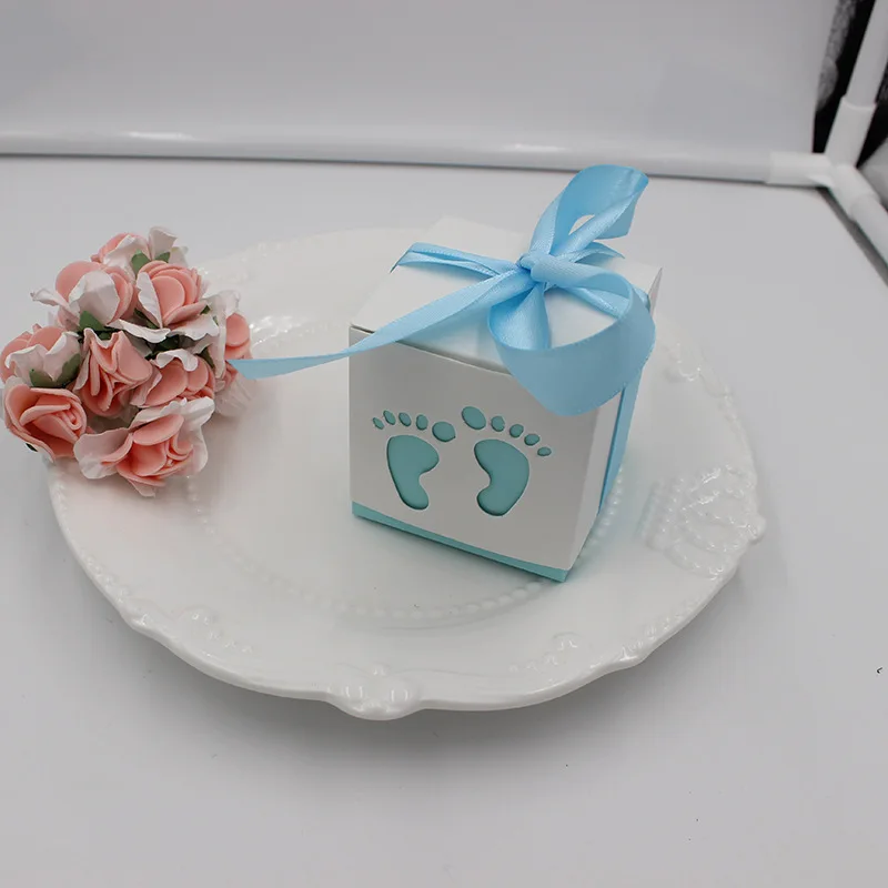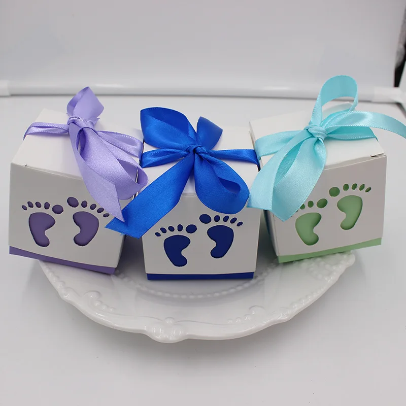 30 шт./лот, детский душ, сделай сам, конфетная коробка для ног, Крещение, подарок на день рождения, Крещение, шоколадная коробка, украшение для дня рождения с лентой