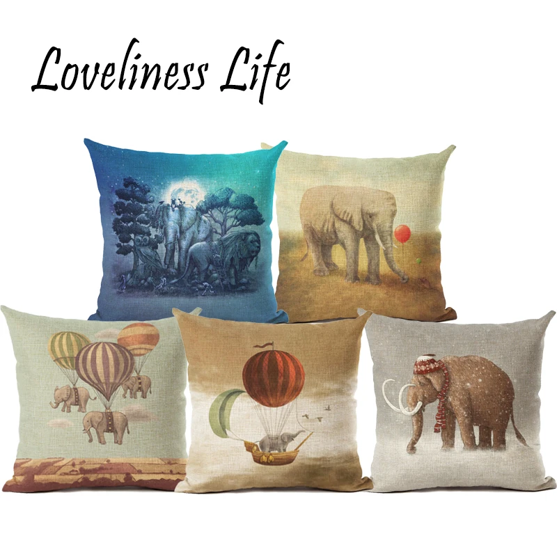 Очаровательная мультяшная Подушка Чехлы хлопковый льняной изготовленные на заказ с изображением слоненка, декоративная подушечка диванная Подушка Чехол Чехлы На Сиденья автомобиля Cojine