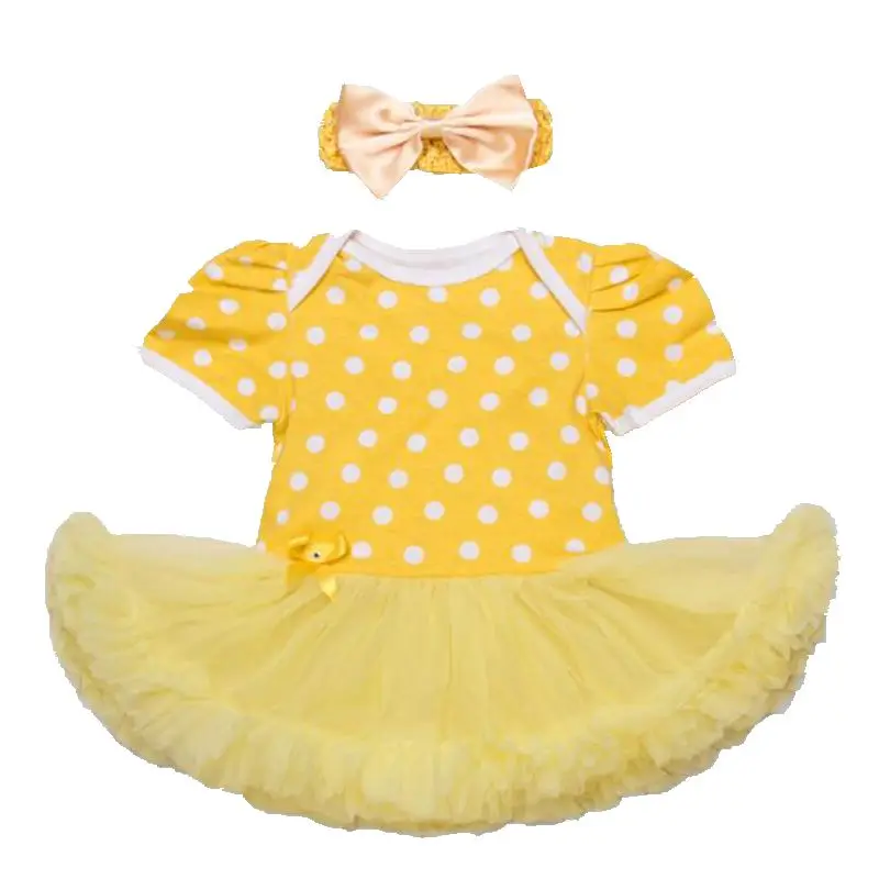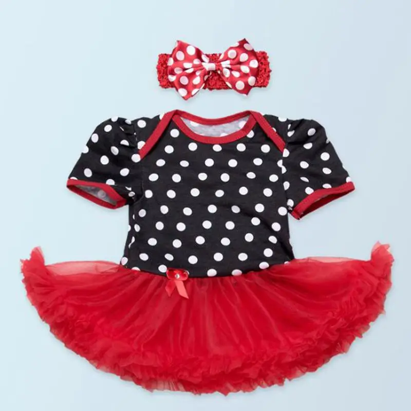 Красочный новорожденный детское праздничное платье с коротким рукавом Детское кружевное платье + ободок набор Vestido Bebe горошек День рождения костюмы