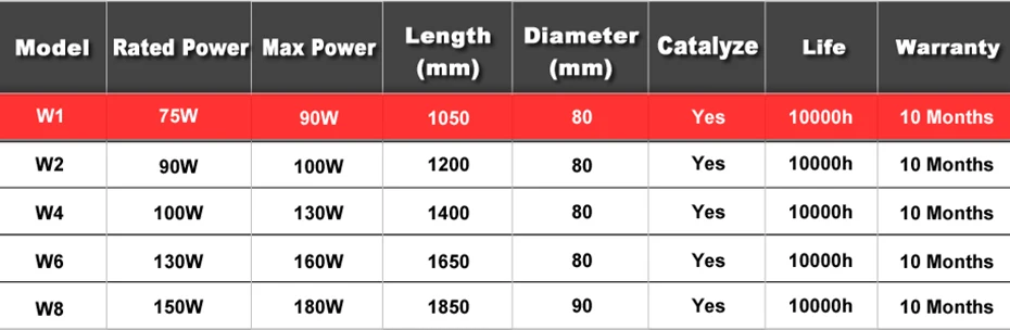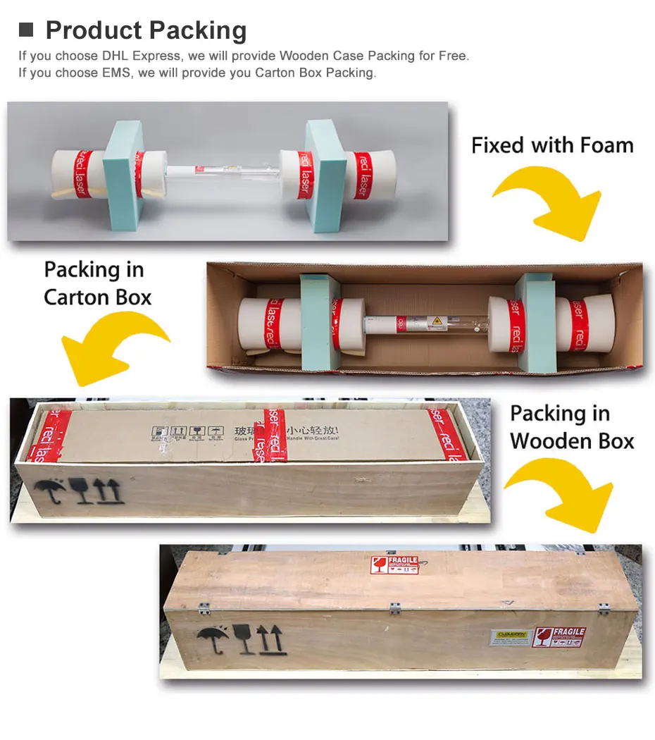 Марка и модель: W1, продукт имеет небольшой размер и хорошую модель, более высокую скорость мощности по сравнению с лазерной трубкой аналогичной длины и более длительного времени службы, которая подходит для лазерной маркировки, лазерная резка и лазерная гравировка.