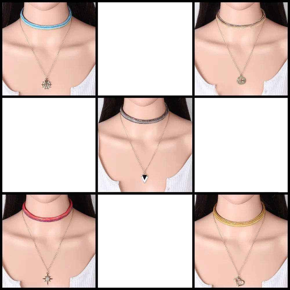 5 Style Sponge Chokers Necklaces for Women Fashion Short Chocker Collares Jewelry 2 layer Short Chocker Neckace ras du cou