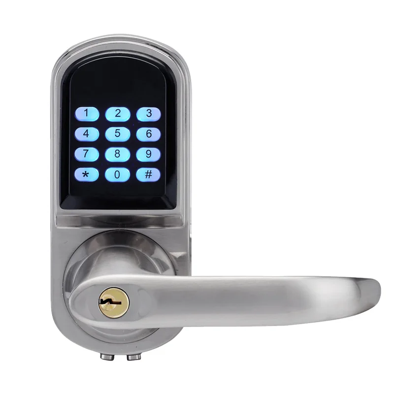 Принять запатентованной герметичная капсула привод вместо двигателя, более стабильным и прочным Из нержавеющей стали структура передачи Бесплатная ручка Свободно менять направление ручка Упрощенный легкая установка Легко менять батарейки Пользователя Deleted индивидуально Ansi Grade2/ce сертифицировано Клавиатура выключения: 10 s если код неправильно вход 3 раза Спецификация: Материал: цинковый сплав, нержавеющая сталь Стандарт врезной: одной защелки Толщина двери требования: = 3.8 см ~ 5.0 см (один), более 5.0 см, пожалуйста, свяжитесь с нами для на заказ Способов разблокировки: товара или переопределить ключевые Способ крепления: автоматический Динамическая мощность потребления: ≤ 200ma Статическое потребление энергии: <30μa Рабочая температура:-30C к 70C Рабочая влажность: 10%-97%Питание: 4x1.5 В щелочные батареи типа АА (в комплект не входит)