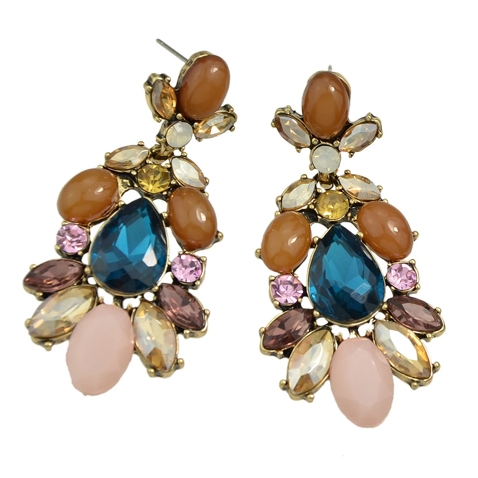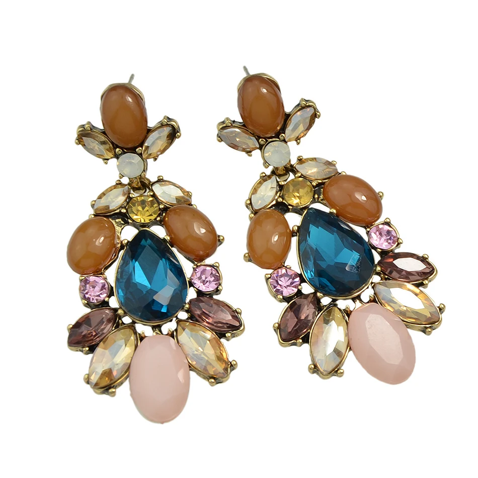 Luxury Brand Earrings Colorful Rhinestone Beads Flower Dangle Earrings New Arrival Brincos For Women