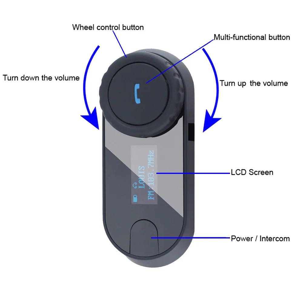 1. После открытия упаковки выньте домофон на шлем, затем нажмите кнопку питания, не отпустите, пока экран не покажет «сопряжение» 2 затем откройте bluetooth вашего мобильного телефона, найдите устройство «TCOM-SC» и подключите. 3 теперь установите устройство на шлем, вы можете слушать музыку во время вождения!
