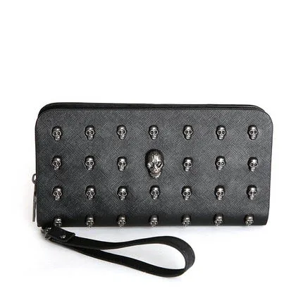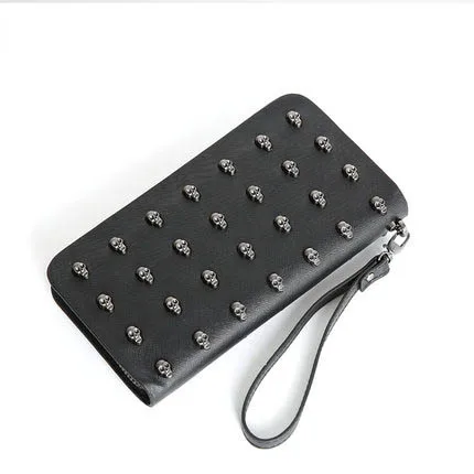 Fashion Cool Men Man Wallet Punk Skull Leather Wallets Rivet Mens Clutch Wallets Free Shipping