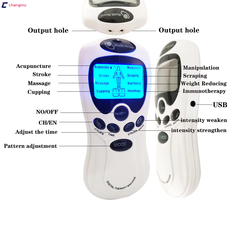 Полностью английский ключ белый двойной вход электрический стимулятор всего тела Расслабляющий мышечный массажер, Пульс ДЕСЯТКИ акупунктурная терапия + 20ЭлектродПрокладки,Адаптер переменного тока (США, ЕС, Австралия)