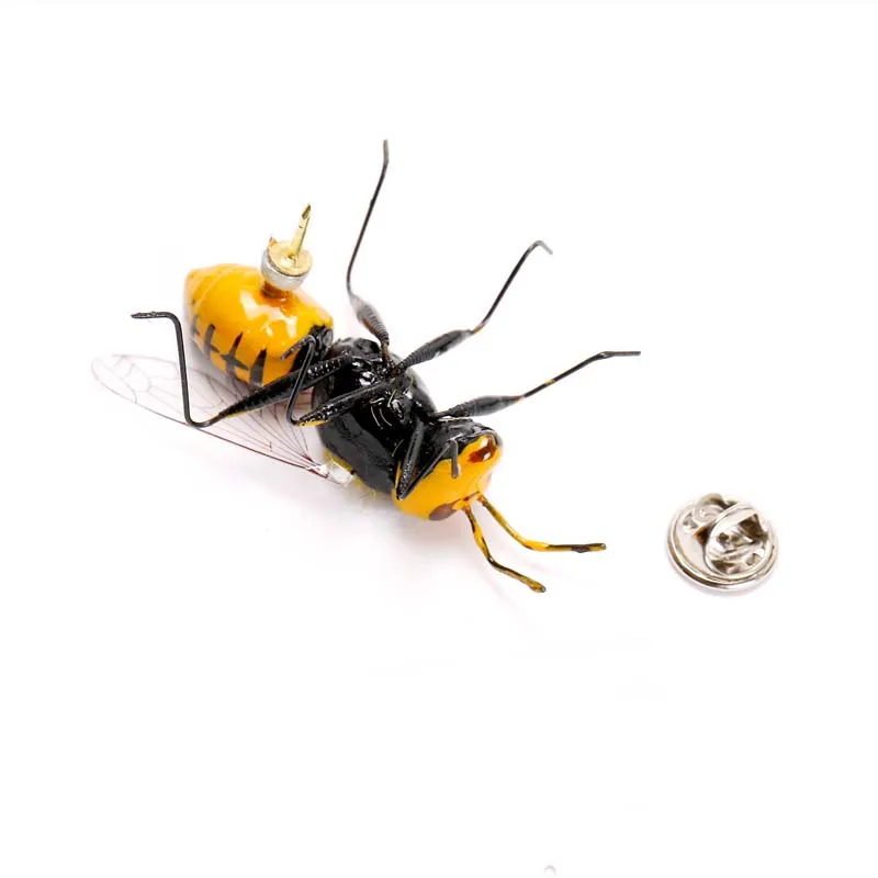 Mdiger Марка Сплава Мужской Костюм Насекомых Pin Броши Корсаж Булавки Воротник Желтый Би Форма Короткая Игла Воротник Пен 10 ШТ./ЛОТ