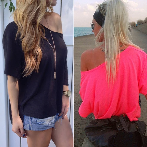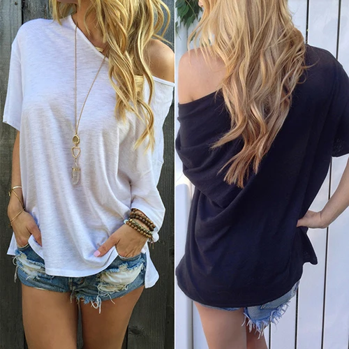 Вне плечо дизайн, чистый цвет, this T-Shirt is fashion and sexy.