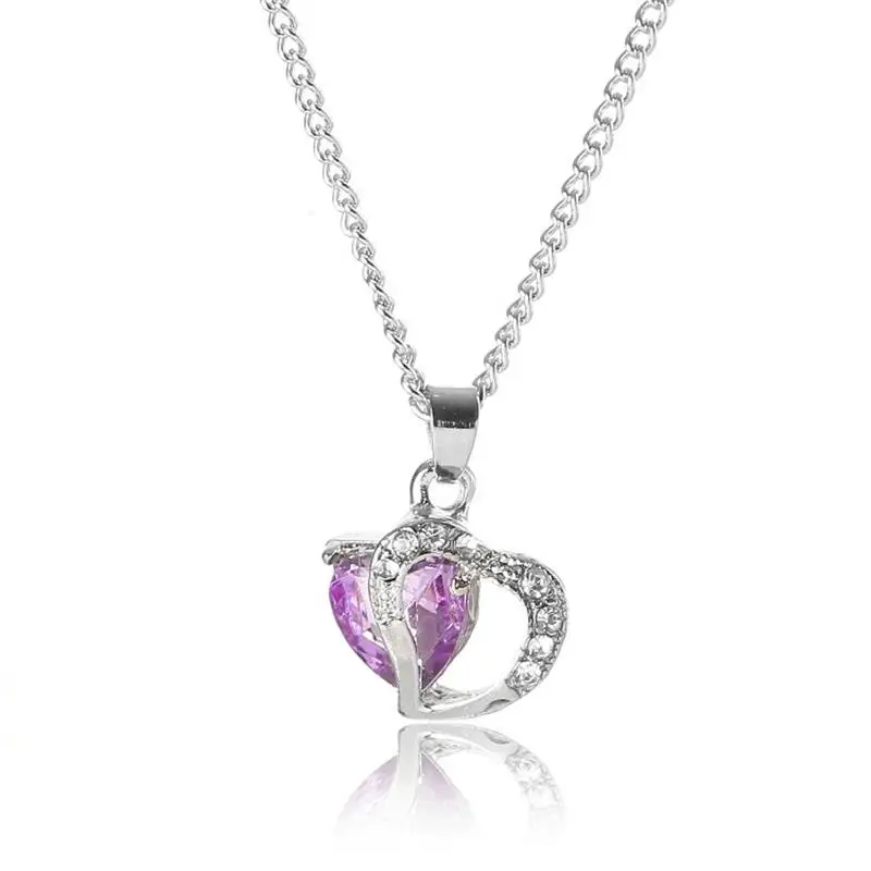 Meajoe Trendy Purple Crystal Heart Stone Pendant Necklace Vintage Charm Iron Chain Pendants Necklaces Jewelry For Women Gift