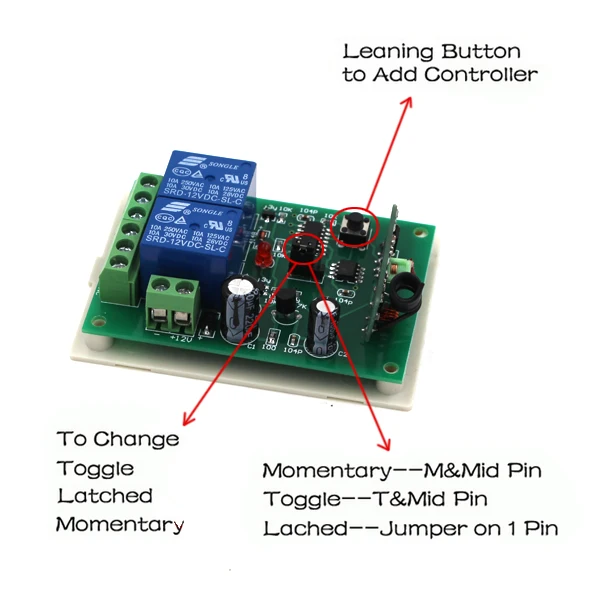 Входная мощность для приемника. Нажмите кнопку обучения до включения светодиодного индикатора. Затем нажмите передатчик, светодиодный индикатор мигает быстро, это означает, что обучение успешно. Очистка кода: Удерживайте кнопку обучения на приемнике до тех пор, пока светодиодный индикатор не включится и не начнет мигать быстро, это означает, что код был успешно очищен. Пожалуйста, обратите внимание, что:Здесь есть 1 * 1CH и 2*2 кнопки дистанционного управления. Вы можете выбрать весь рабочий способ, которым выМожно выбрать, вам лучше выбрать пробежку или самозамок, так что все кнопки были использованы.