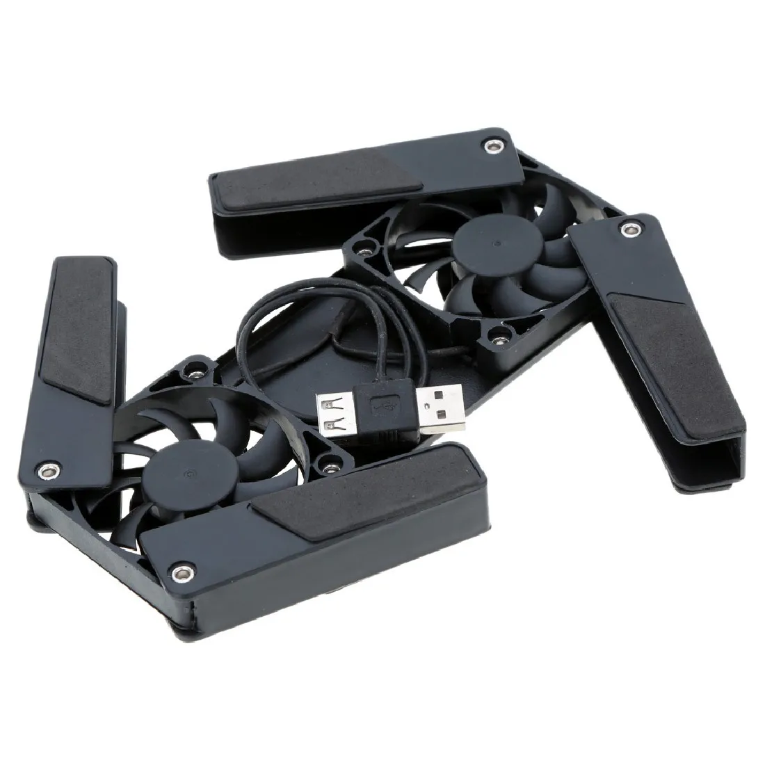 Тонкий и умный дизайн системы охлаждающей колодки с большим, высокопроизводительные и очень тихие 2 встроенных вентилятора, которые абсолютно помогают рассеивать тепло-воздух вдали от компьютера ноутбука для охлаждения общей температуры вашей системы.