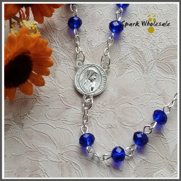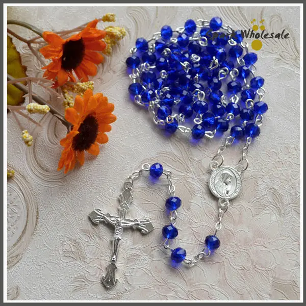 Христианские синие хрустальные четки ожерелье стеклянные четки