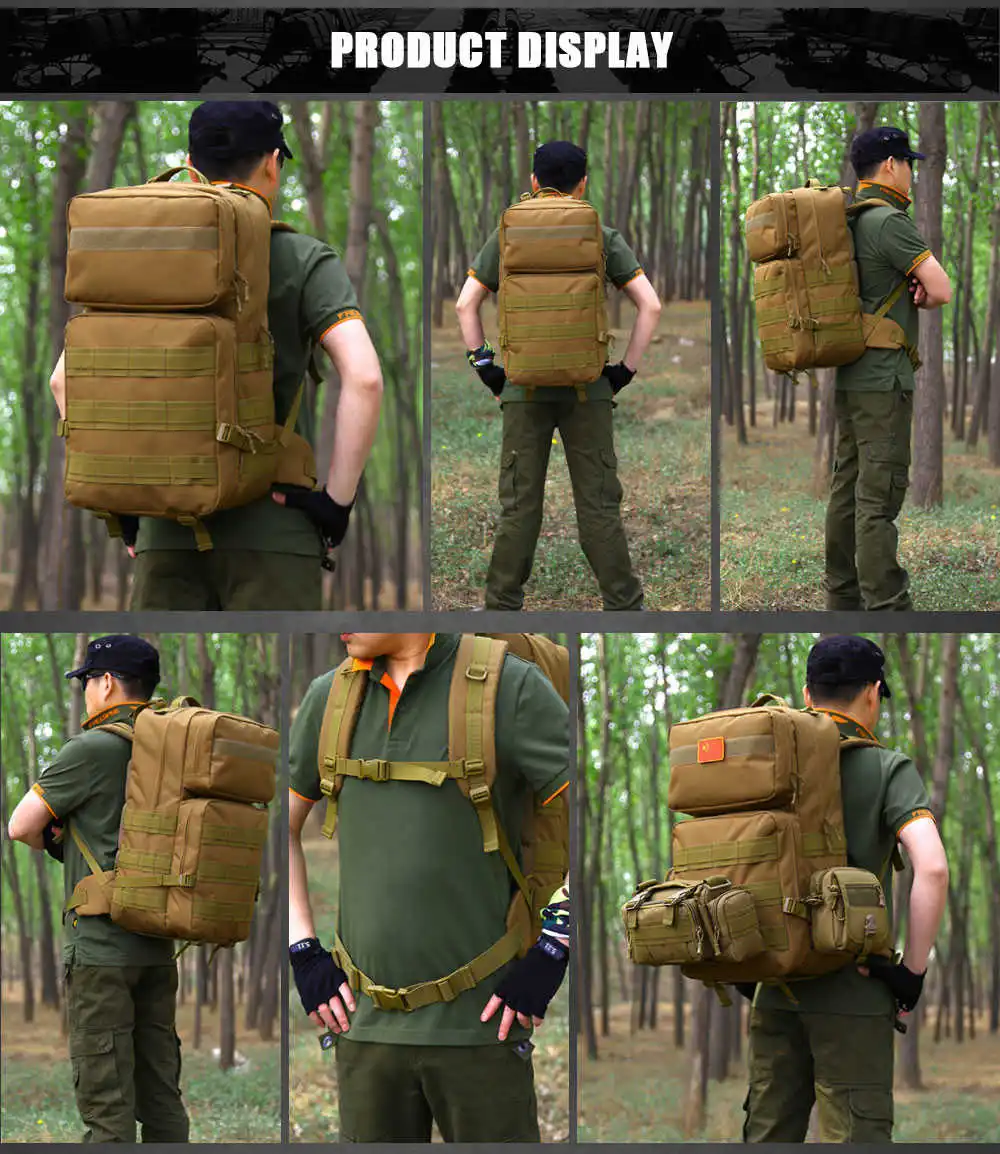 Название: 55L рюкзак Размер: 58*33*25 см Материал: нервущийся нейлон Цветовая гамма: CB/BK/DD/JD Вес: 1,6 кг Объем: 17 дюймового ноутбука, 30 шт., футболка, A4 журналы Подходит для: занятий спортом, пеших прогулок, езды на велосипеде, альпинизма, Отдых на природе | |