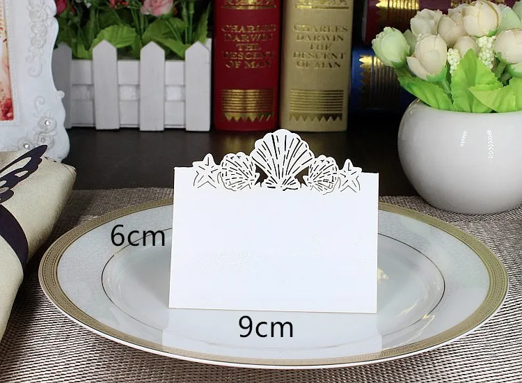 100 упаковок, белая пляжная тематическая Свадебная карта, лазерная резка, морская раковина, ракушки, номера свадебных столов