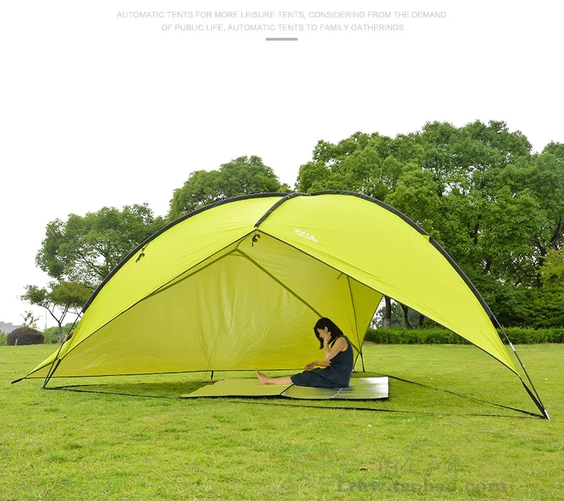 【Features】 большое пространство, стабильная структура, хорошая вентиляция, для широкого спектра кемпинга на открытом воздухе, можно сделать командную комнату! Когда не в объеме с палаткой, прикрепленной к ручному мешку, маленький размер, может нести, может быть разрушен, очень удобно.