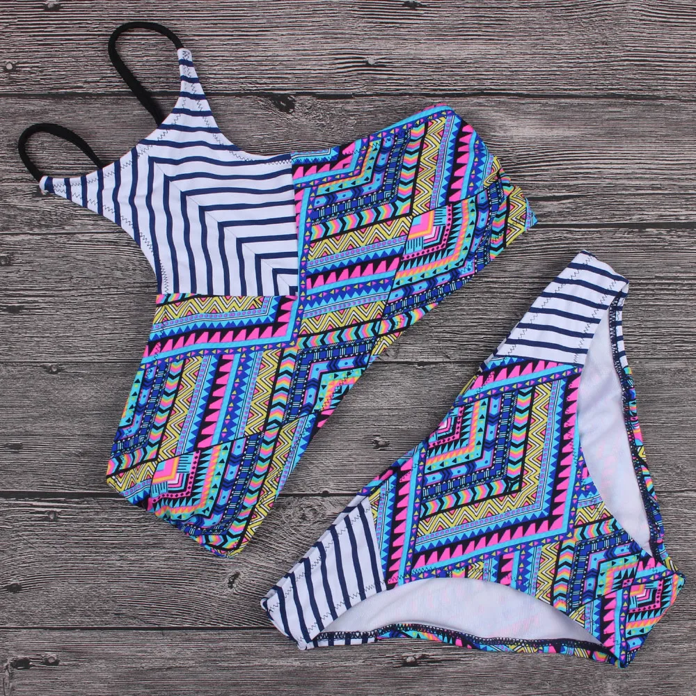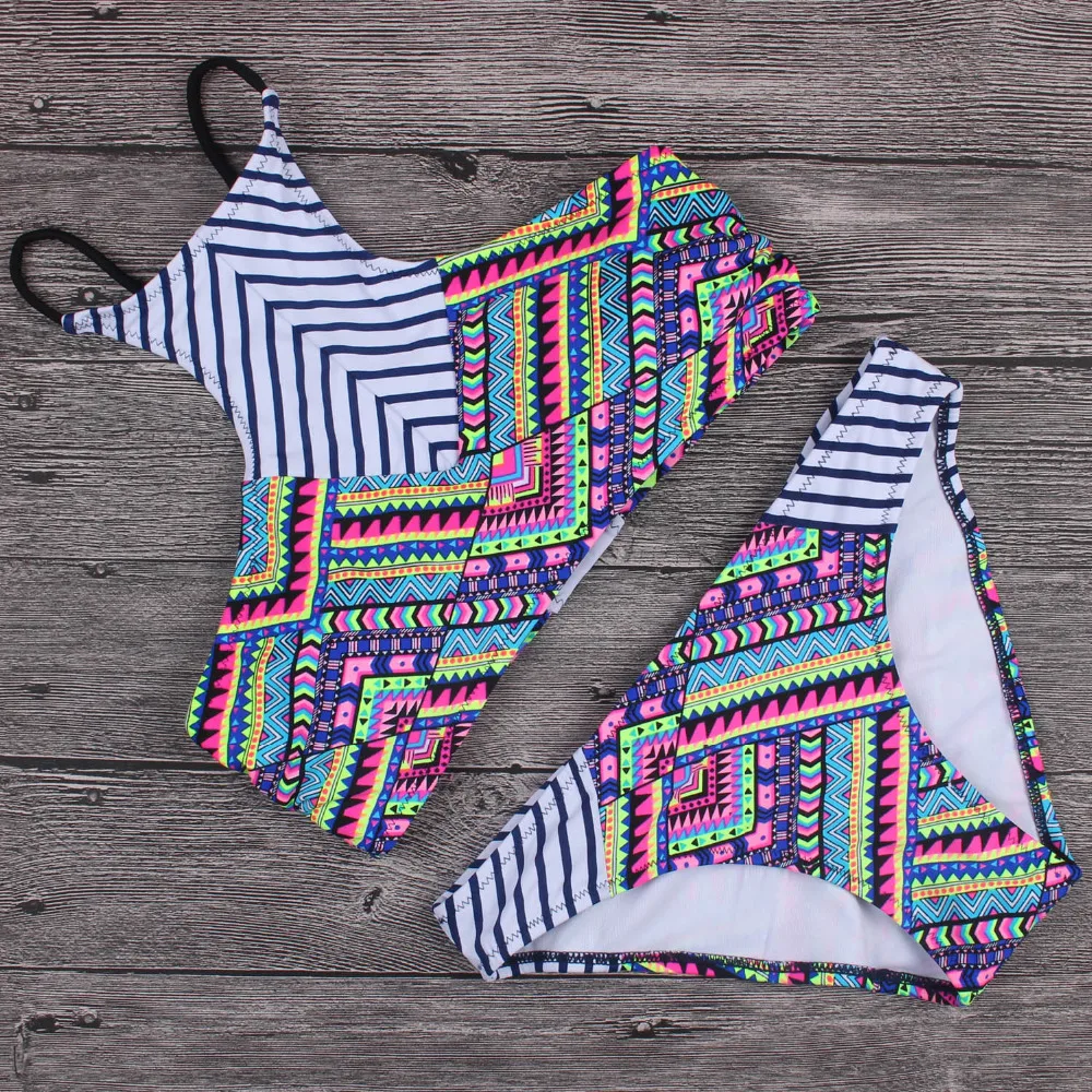 Женский винтажный купальник-бикини с цветочным принтом, треугольный купальник с высокой горловиной, 2019