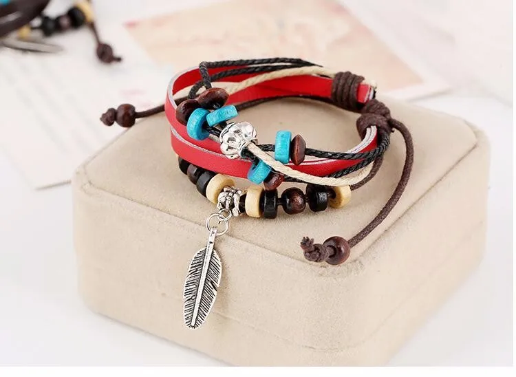 Наименование товара: Модный очаровательный женский кожаный браслет Античный посеребренный сплав перо Кулон Корона Браслет из натуральной коровьей кожи браслет обруч Цвет: Черный; Белый; Брови; Красный Материал: Пеньковая веревка/натуральная кожа/цинковый сплав Размер: Приблизительно 17-30 см по периметру (1 см = 0,39 дюйма регулируемый)
