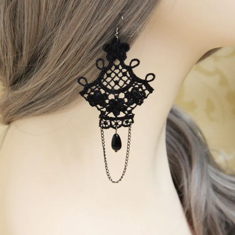 | Инструкция продукта Xuanran Горячая мода уличная Женская Девушка Черная кружевная люстра серьги-слезки Винтаж готика Викторианский стиль классический бижутерия подарок |