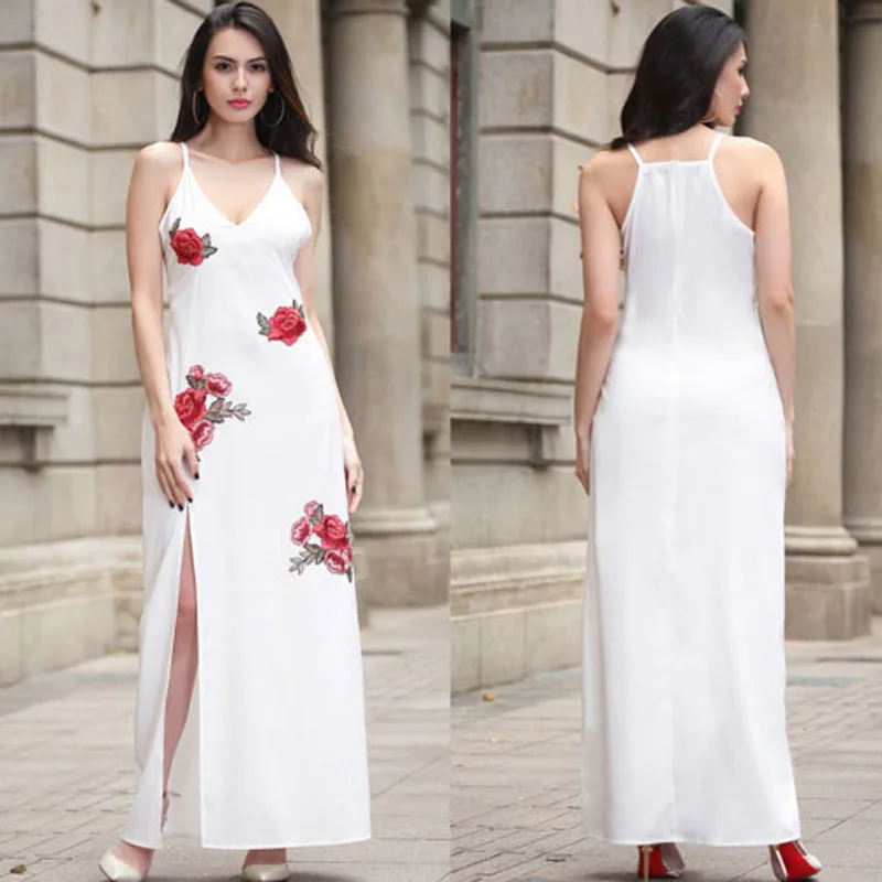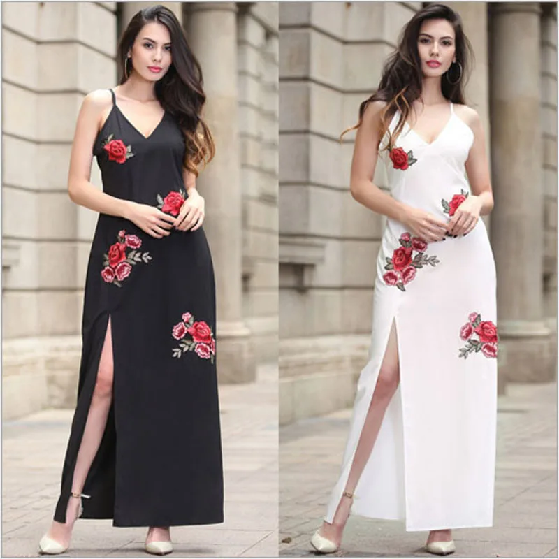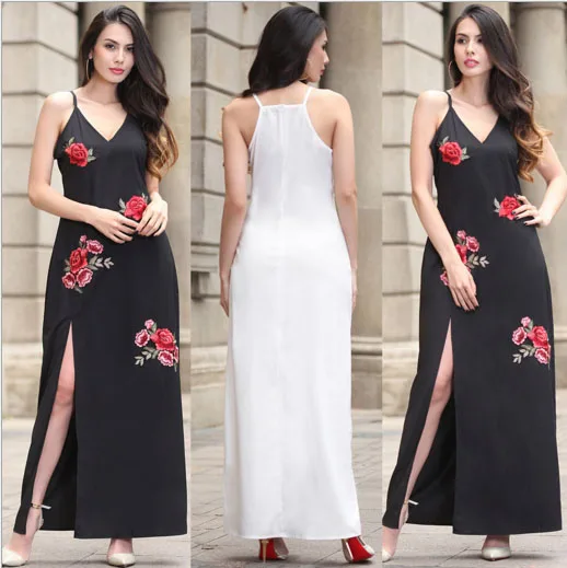 2017 летнее платье новая женская одежда Европа и американское сексуальное платье с вышивкой V-образным вырезом платье с открытой вилкой платье лопнуло оптом
