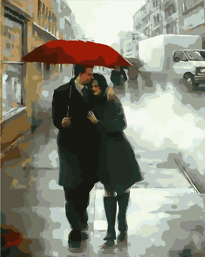 Красный зонтик для влюбленных, милая пара, картина по номерам, Краска на холсте, акриловая окраска, Painitng по номерам для домашнего декора стен