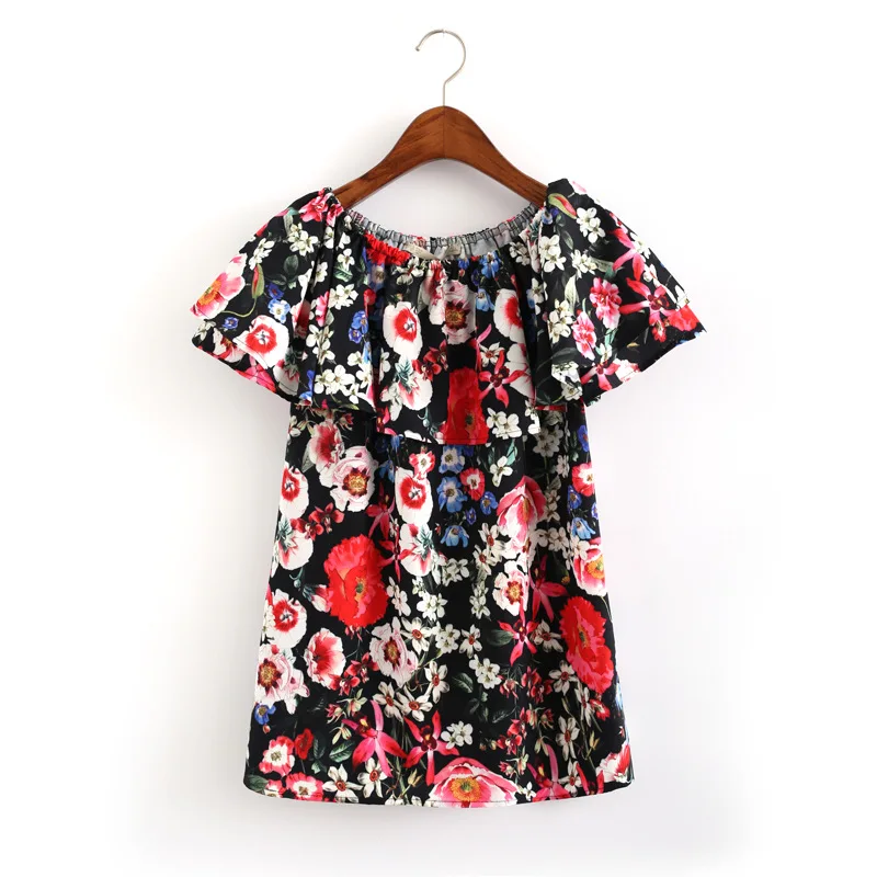 оборками Блузка Летняя Рубашка Для Женщин 2017 Новый Коротким Рукавом Шифон Slash Шеи Топы женщин С Плеча Элегантный Blusa Femmeпродавец: