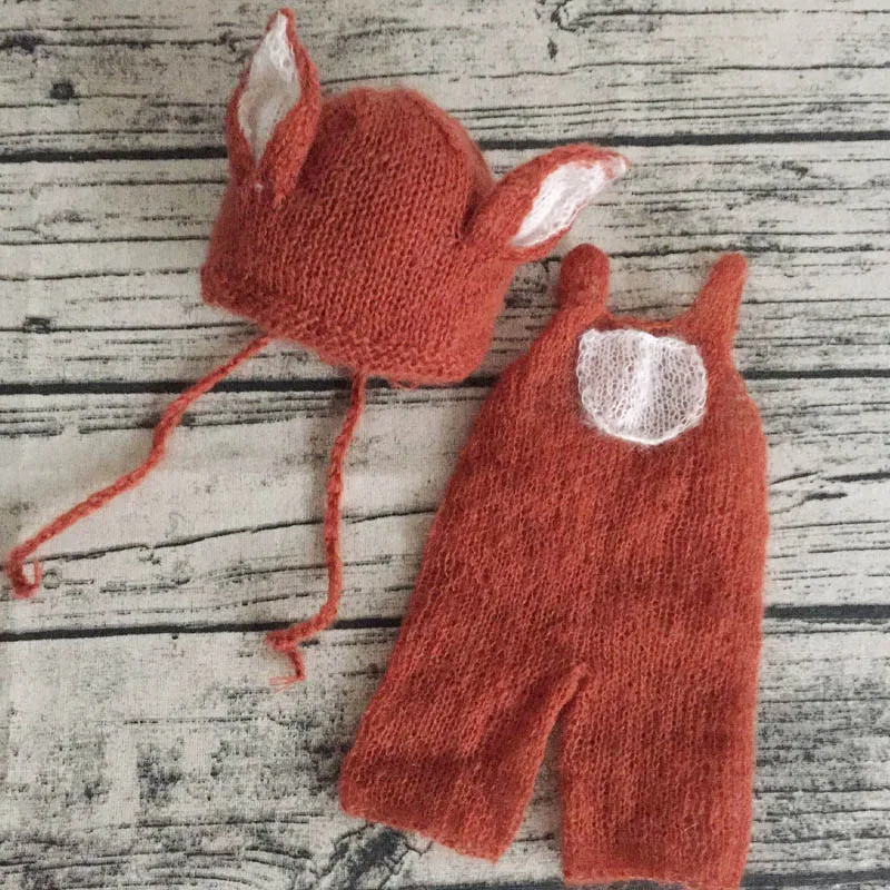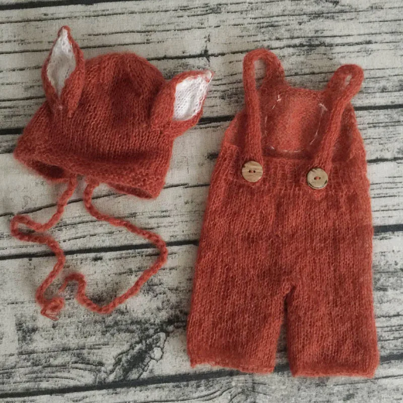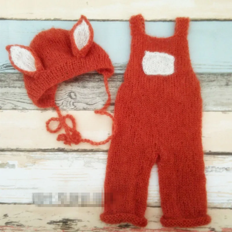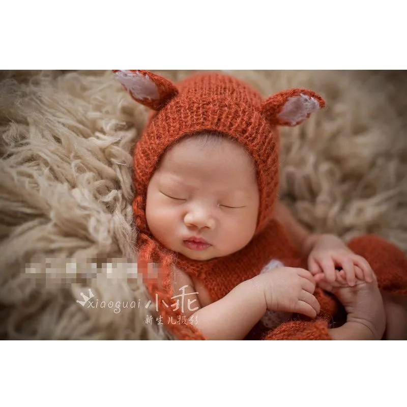 Одежда для новорожденных с рисунком лисы шапка для новорожденных, мохер комбинезон ручной работы вязаная детская шапка животных капот реквизит для фотосессии новорожденных Подставки для фотографий