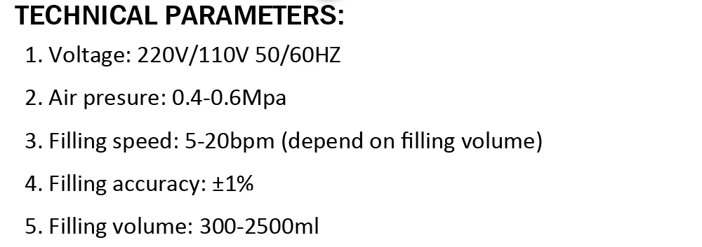 3. Filling speed: 5-20bpm (depend on filling volume)