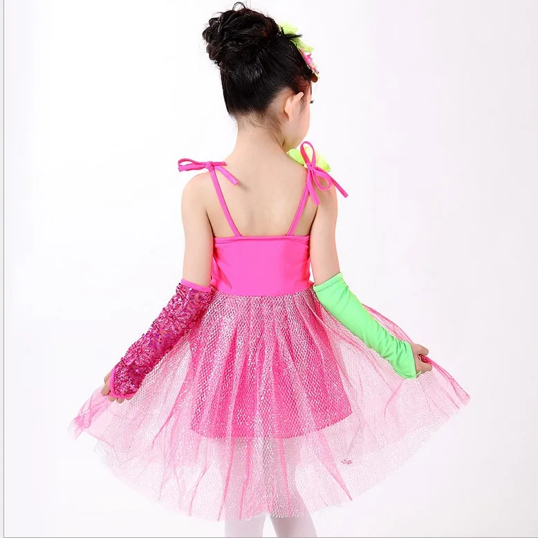 Бесплатная доставка, новый стиль, зеленый, розовый, детское бальное платье для латинских танцев, народное платье для танцев с цветами, костюм с блестками для девочек, свадебное платье