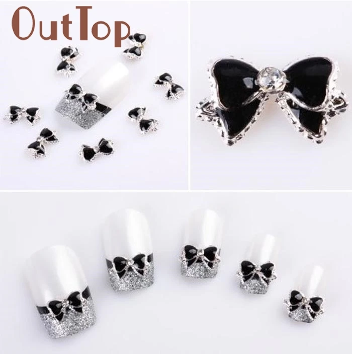 10 шт. милые 3D Стразы из сплава для дизайна ногтей галстук-бабочка Блестящий ломтик DIY стикер для ногтей украшение черный j
