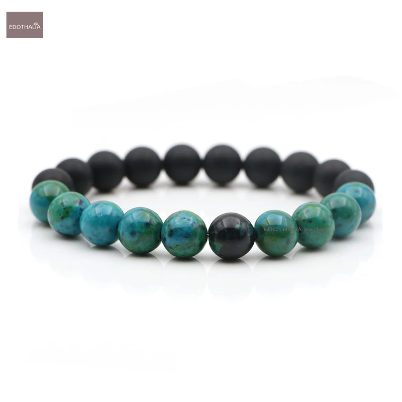 Материал: 10 мм матовый черный оникс, бусина из хрисоколы