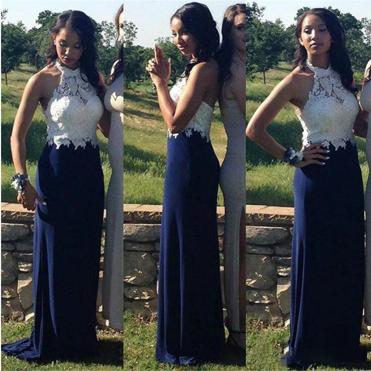 Сексуальное платье с лямкой на шее темно-синего и черного цвета для девочек, платье Русалочки для выпускного вечера 2017, белые платья для девочек, вечерние платья